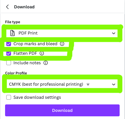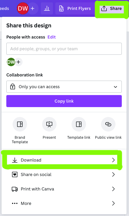 - Share your file as a Download with the following options chosen.
