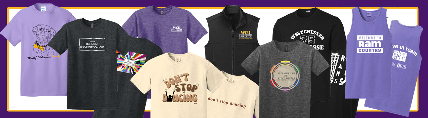 These are just a few examples of apparel we've done for WCU in the past year. Please click on the image above to browse our apparel catalog or click here to send an email requesting more information.